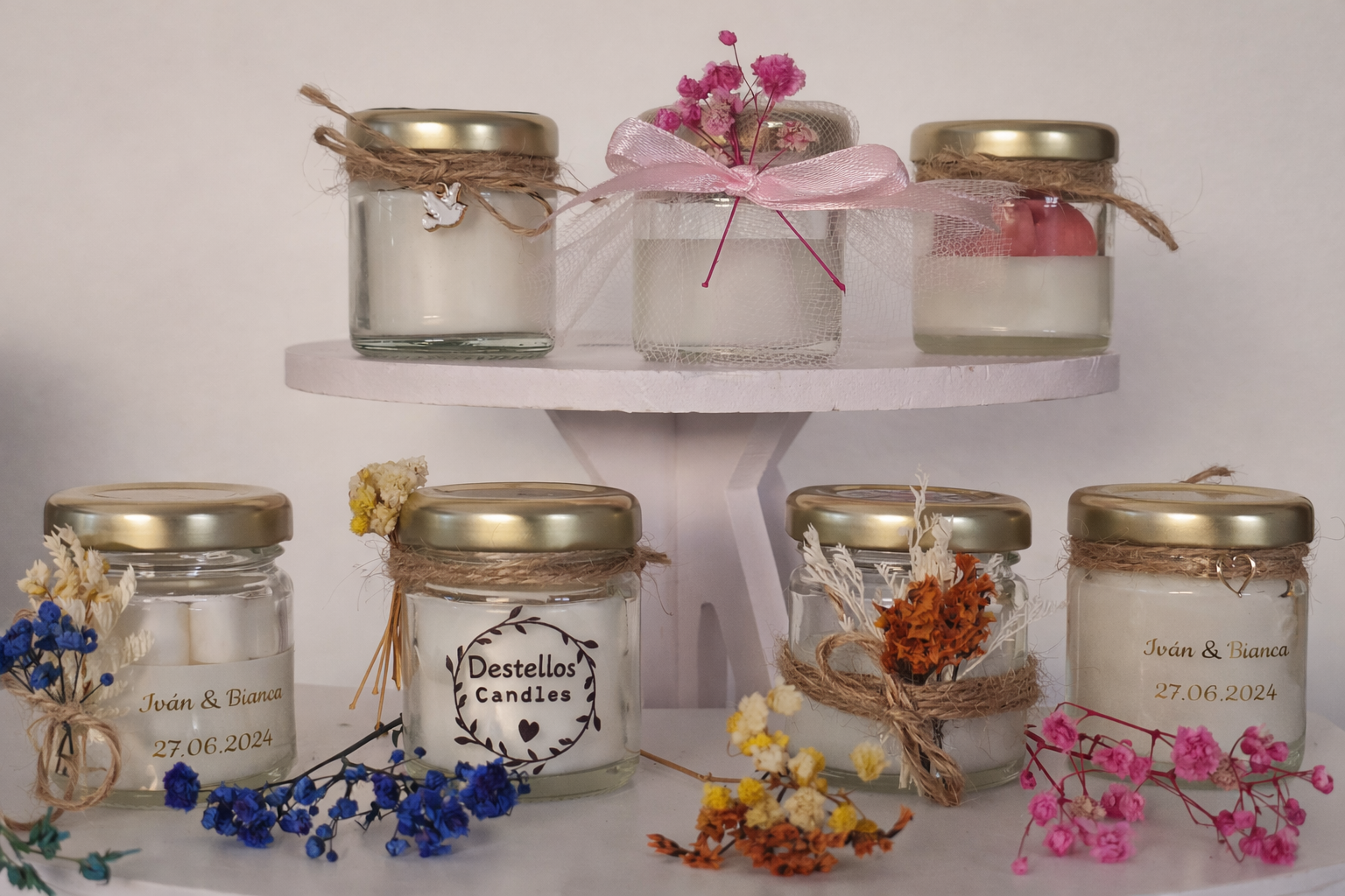 Lo que hace única a esta mini vela es su etiqueta personalizada, diseñada especialmente para reflejar tu estilo o transmitir un mensaje especial. Es perfecta para regalar en ocasiones especiales como bodas, cumpleaños o simplemente para expresar un gesto de cariño. Con su tamaño compacto, es ideal para decoraciones minimalistas, agregando un encanto discreto pero impactante.