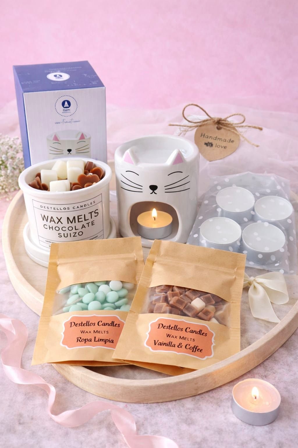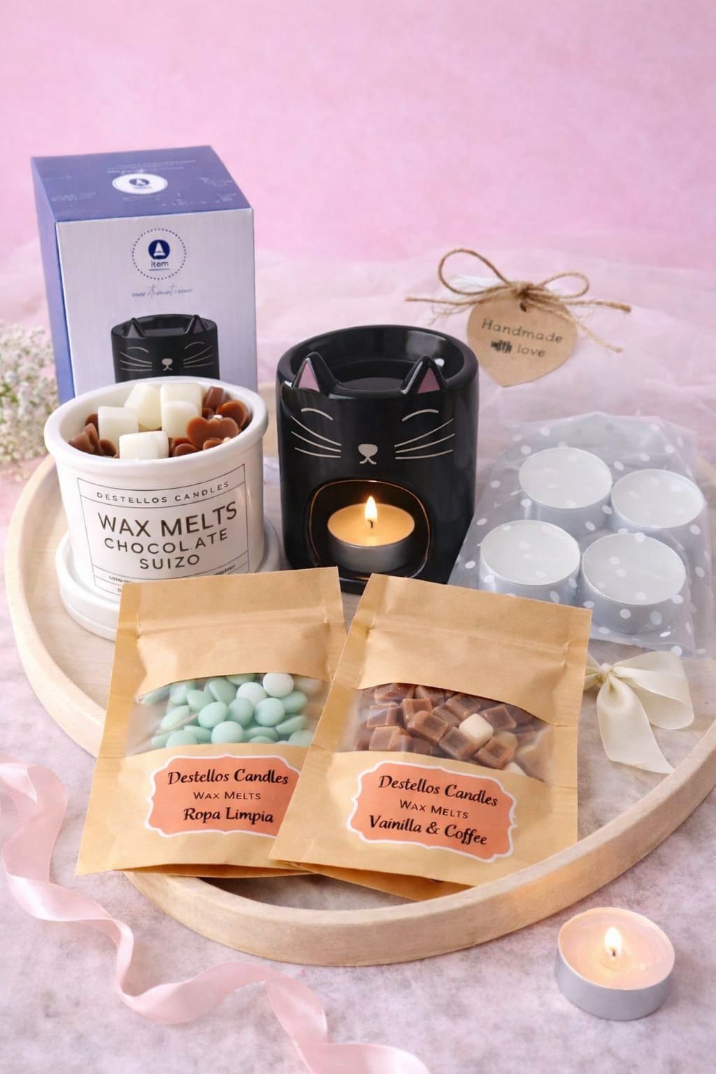 Diseñado para usar con wax melts o aceites aromáticos, permite una difusión suave y constante del aroma gracias a su abertura frontal, compatible con velas tipo tealight estándar.